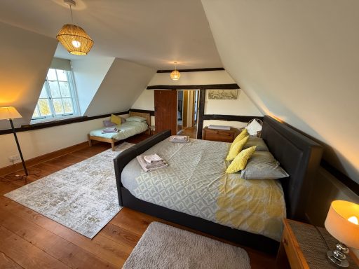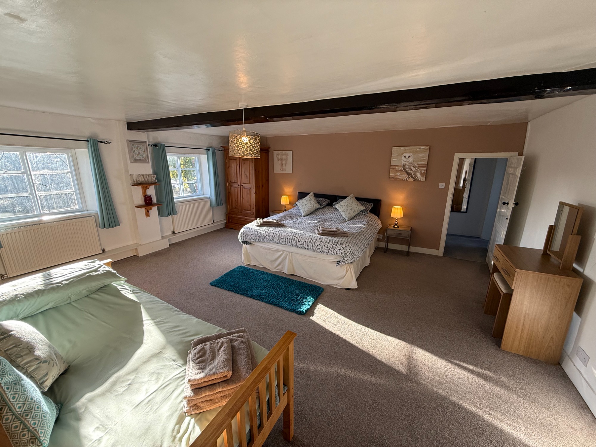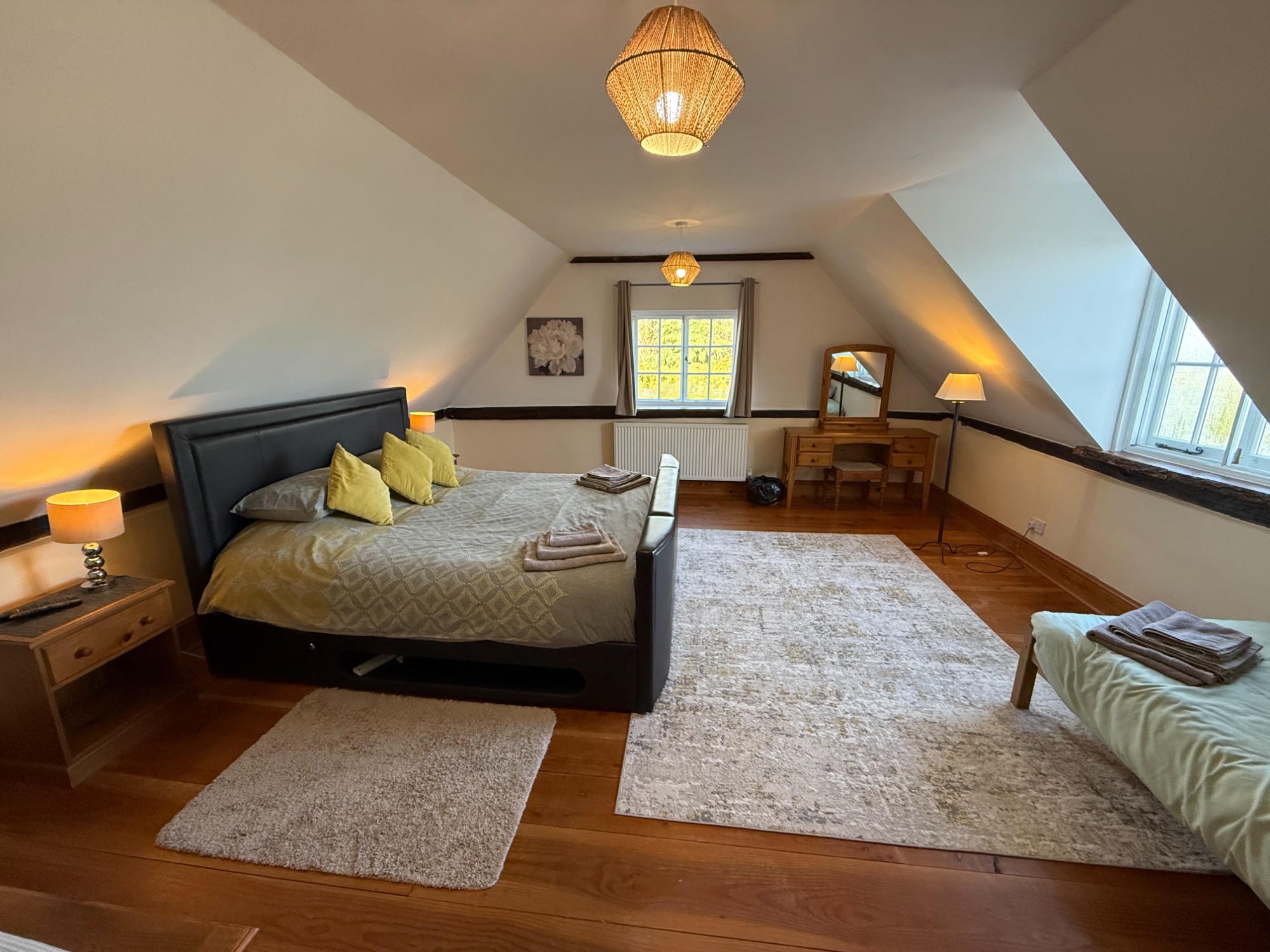 Our four bedrooms, offering a superking bed that can be split to singles.   Plus Garden room with double sofa bed.